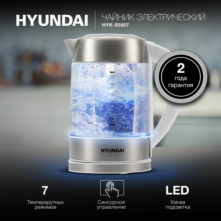 Отзывы о Электрочайник Hyundai HYK-S5807 (белый/серебристый)