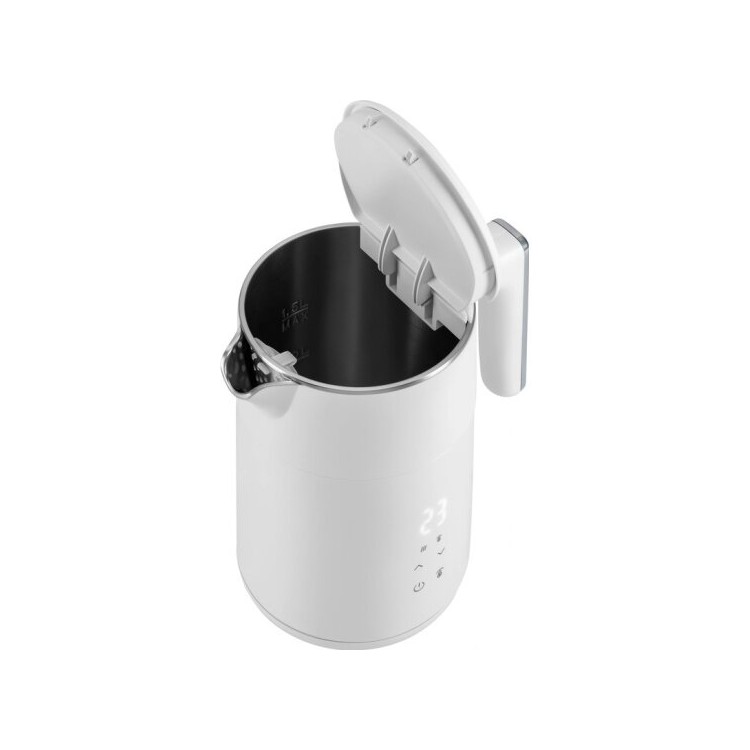 Благодаря высокой мощности чайник быстро приготовит тёплую и горячую воду нужной температуры под разные цели. У модели есть 7 настраиваемых температурных режимов (40, 50, 60, 70, 80, 90, 100 °С) для разных сортов чая, кофе, настоек и компотов, приготовления детского питания и других бытовых нужд. Также есть функция поддержания температуры.