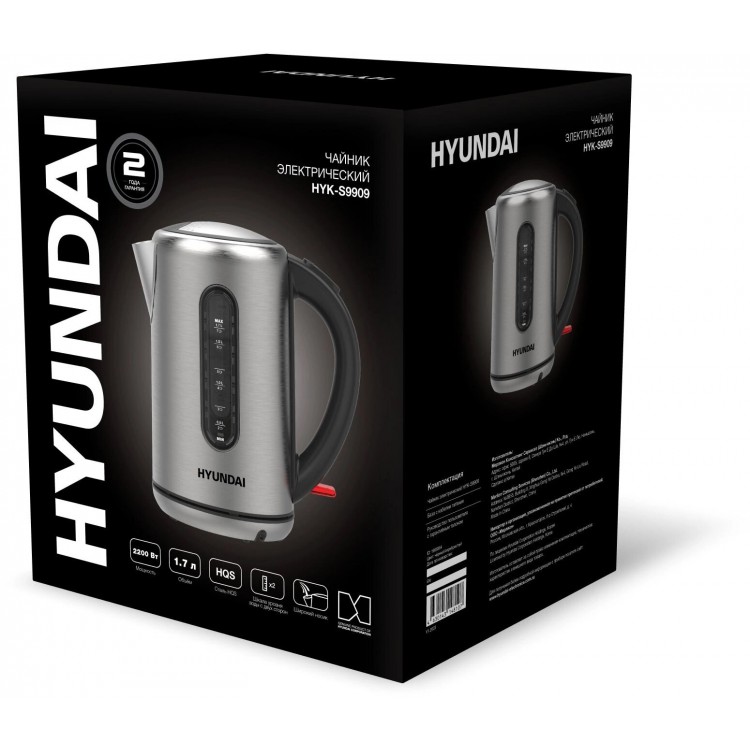 | Название | Чайник электрический Hyundai HYK-S9909 1.7л. 2200Вт серебристый матовый/черный (корпус: стекло) |