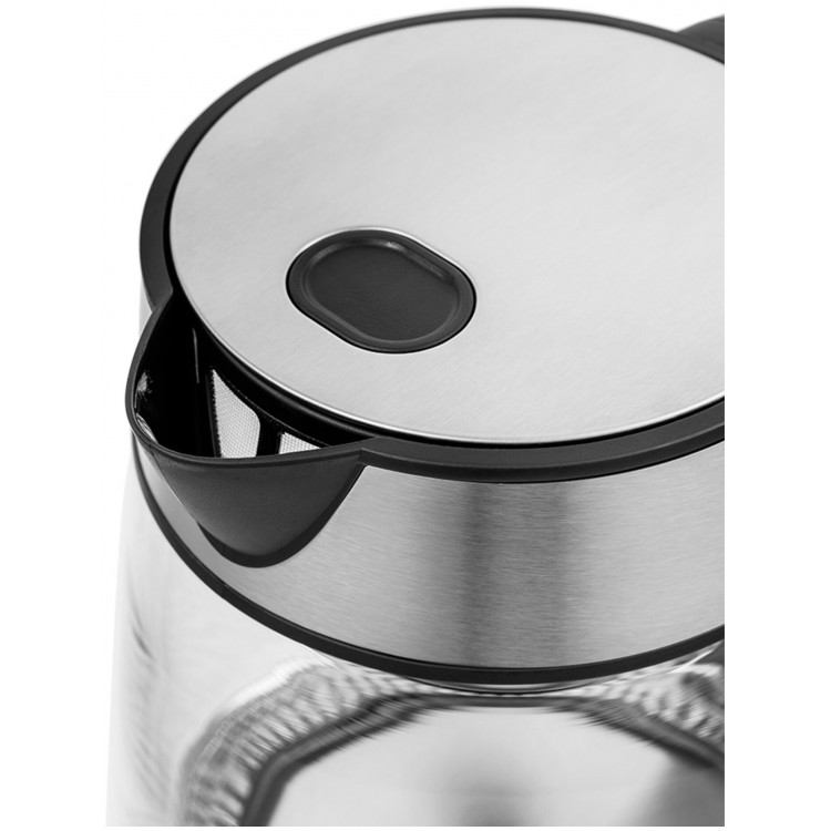Стеклянный красивый чайник, удобно следить за уровнем воды. Достаточный объем, даже для большой компании. Стильный дизайн, смотрится отлично. Подсветка меняется в зависимости от температуры воды. Функция открытия крышки в одно касание позволит без труда одной рукой набирать воду в чайник.