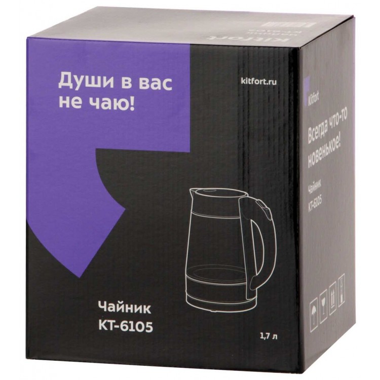 Доброго времени суток. Хотелось бы оставить отзыв о чайнике kitfort-kt6105 купленном в январе месяце. За время эксплуатации чайник зарекомендовал себя только с положительной стороны, как в плане тихой работы в режиме нагрева, яркой, своего рода экзотической подсветкой, которая меняет режим цвета по мере нагревания среды, так в плане приятного, симпатичного дизайна. В целом, бытовые приборы kitfort имеющиеся в моем пользовании вызывают только положительные отзывы. Смело рекомендую данный чайник к покупке.