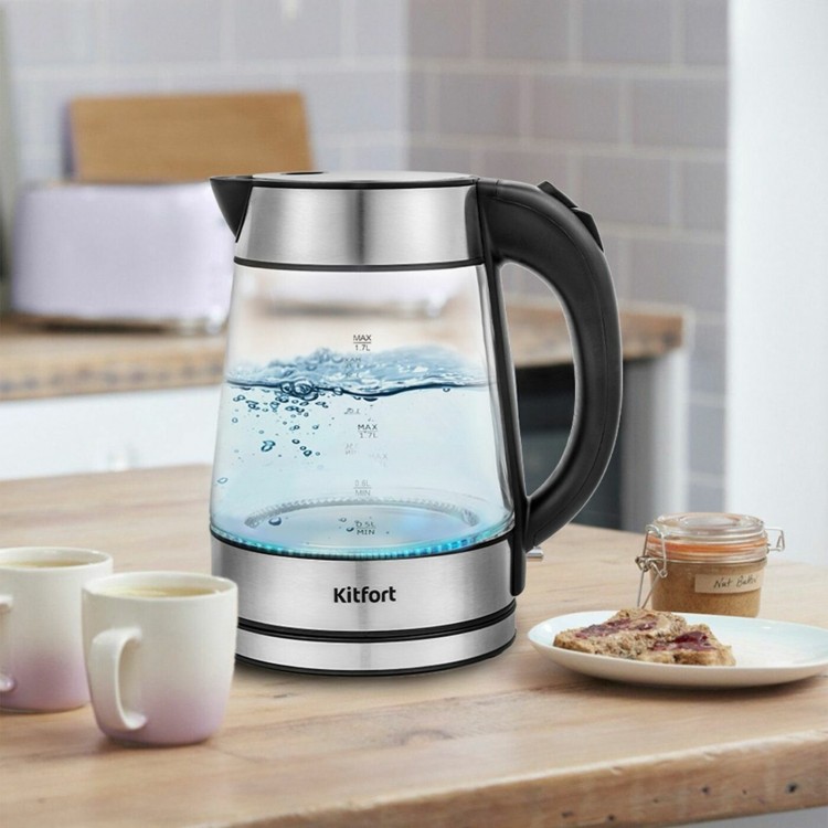 Чайник Kitfort оставил у меня смешанные чувства. С одной стороны, он быстро нагревает воду, что, безусловно, является большим плюсом, особенно когда времени в обрез. Корпус выполнен из стекла, на первый взгляд кажется надежным и прочным. Дизайн достаточно лаконичный и вписывается в интерьер моей кухни. Приятная подсветка как дополнительный бонус. Носик спроектирован таким образом, что вода не проливается при наливании. Крышка открывается легко, без заеданий, но не достаточно широко. Наливать воду мне не удобно. Но для меня это мелочь, приловчился