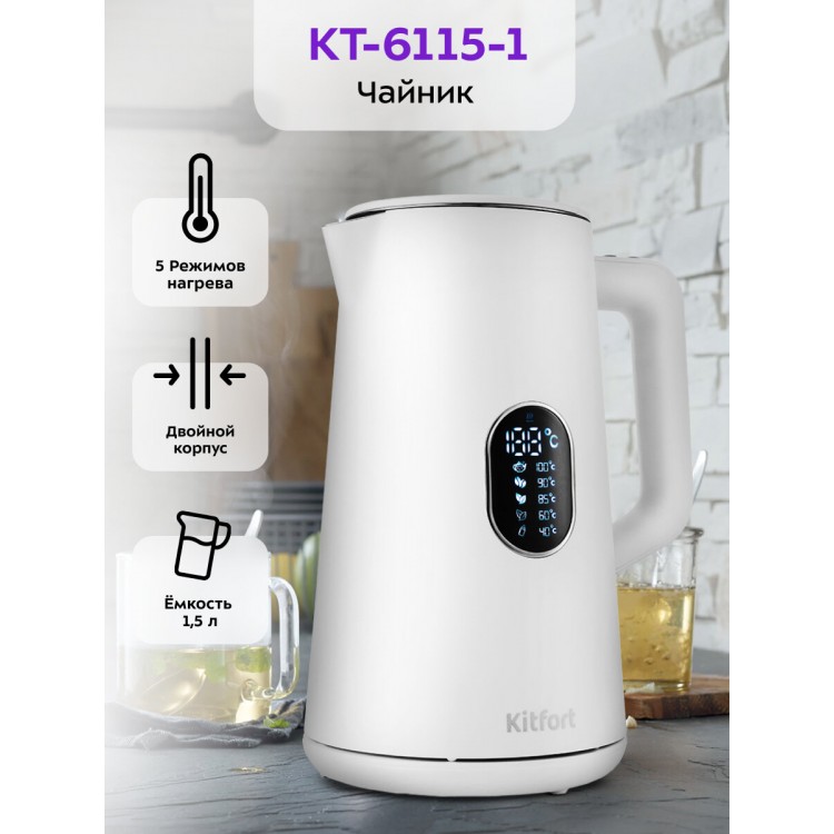 Электрочайник Kitfort КТ-6115-1 (белый)