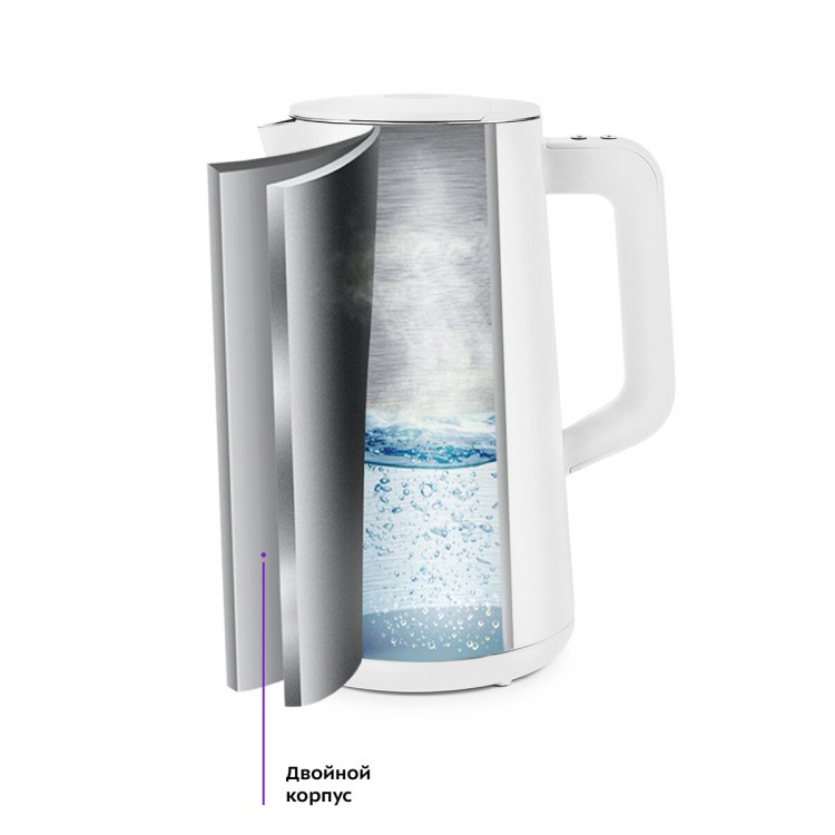 Мощность 1800 Вт обеспечит быстрое кипячение воды. А в режиме поддержания температуры мощность составит всего 0,5 Вт, что позволит сэкономить электроэнергию.