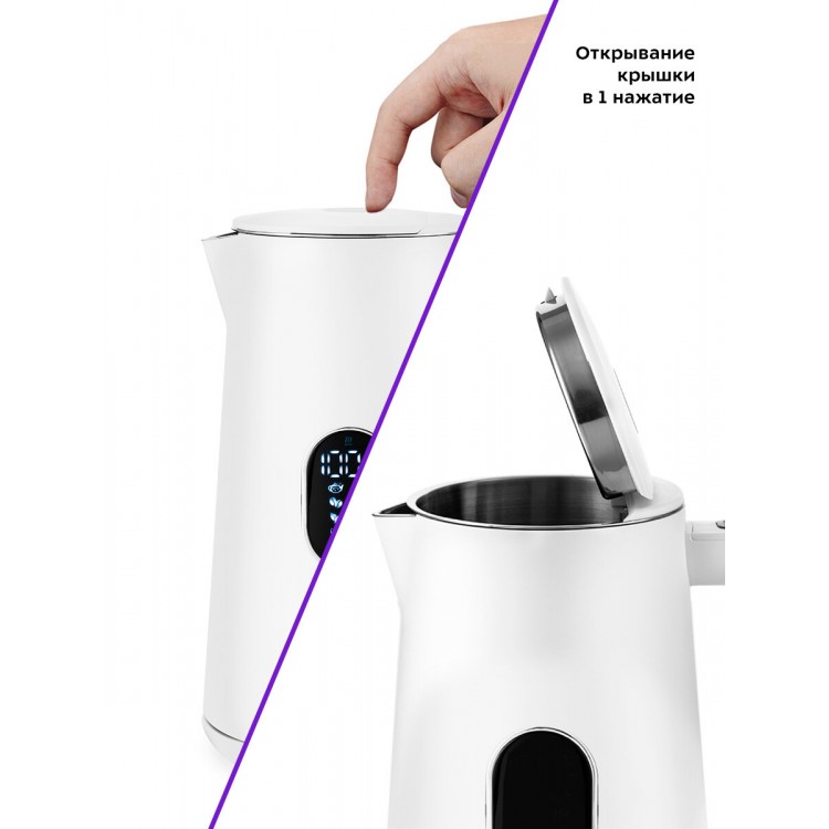Отличный чайник! Очень стильный дизайн, выглядит современно и аккуратно. Удобно, что можно точно регулировать температуру и видеть её на дисплее. Работает быстро и тихо. Рекомендую