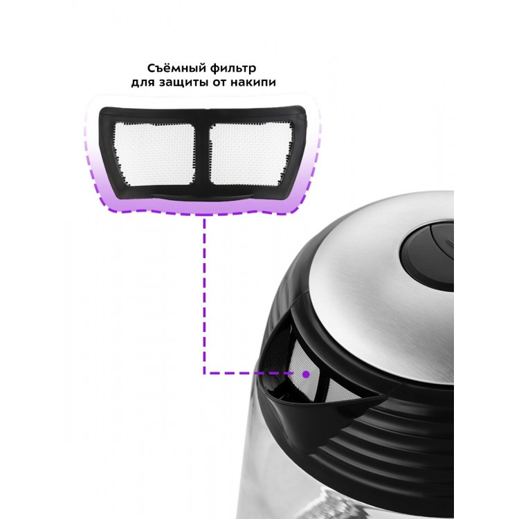 · Безопасное использование. Срабатывает автоматическое отключение при закипании, а если случайно включить пустой чайник, сработает защита от перегрева .