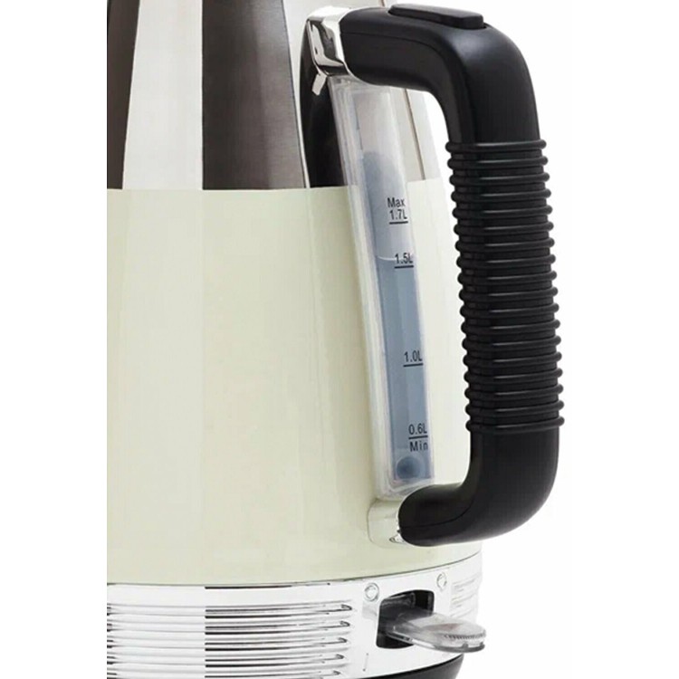 Модель выглядит приятно и стильно благодаря своему оригинальному дизайну — винтажный термометр и нежный молочный бежевый оттенок. Носик удобен в использовании, крышка открывается легко.