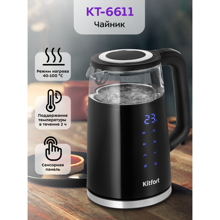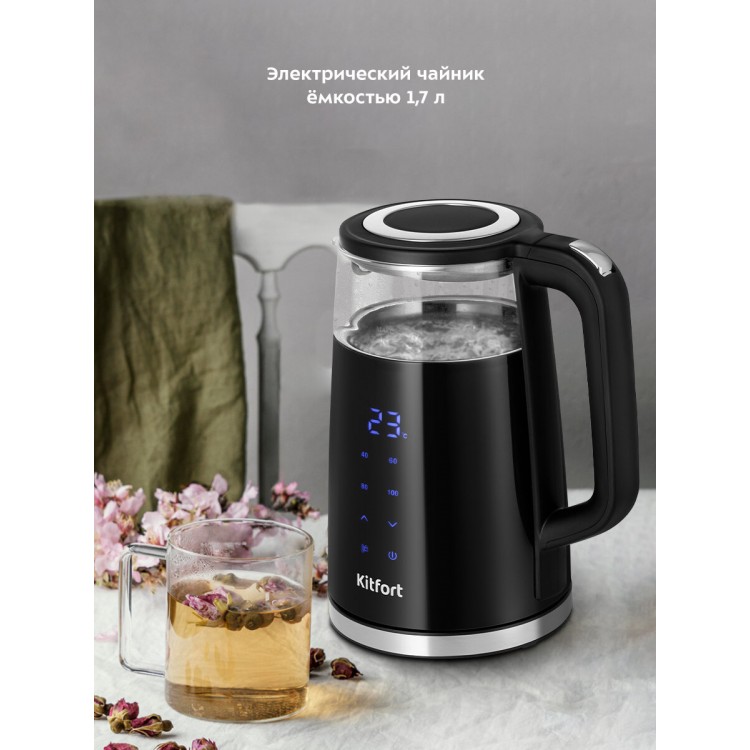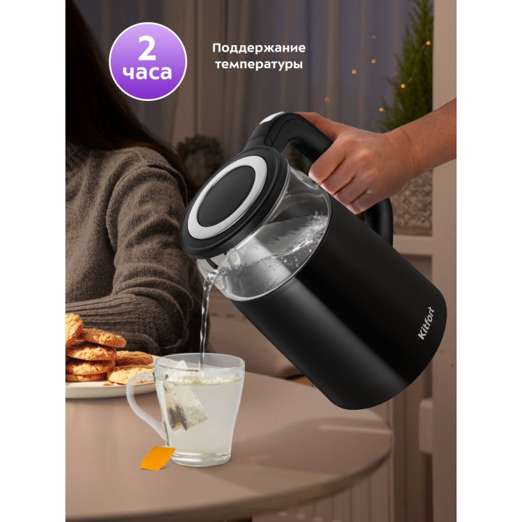 Электрический чайник Kitfort стал настоящим открытием для нашей семьи. Теперь мы можем наслаждаться горячим напитком в любое время суток благодаря удобной функции поддержания температуры. Очень удобно, что можно выставить точную температуру от 40 до 100 градусов — идеально подходит для заваривания разных видов чая и приготовления детского питания. Индикатор нагрева на дисплее позволяет точно контролировать процесс, что добавляет комфорта в повседневное использование. Качество сборки отличное, материал корпуса приятный на ощупь и легко моется. Рекомендую всем, кто ценит комфорт и удобство на кухне.