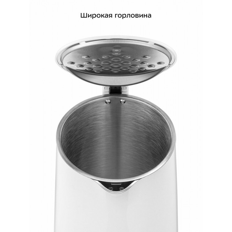 Стильный дизайнБыстро кипятит воду – мощность хорошая, вода закипает за минуту-двеУдобная ручка и носик – ничего не проливается, удобно наливать.Качественные материалы – пластик не пахнет