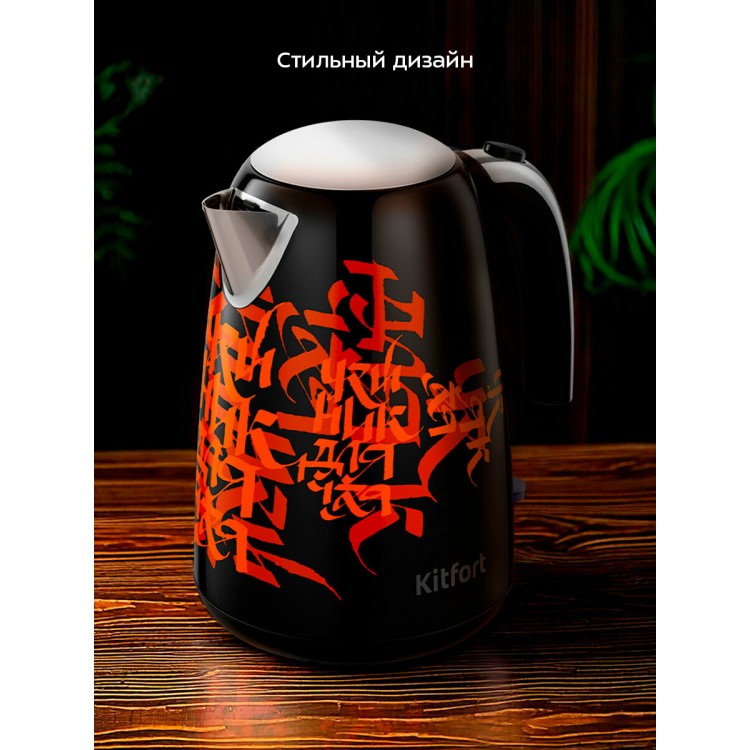 Чайник Kitfort КТ-6719 имеет блокировку включения без воды и отключается при снятии с подставки, что гарантирует безопасность использования. Индикация включения и рисунок на корпусе делают его не только функциональным, но и стильным дополнением к вашей кухне.