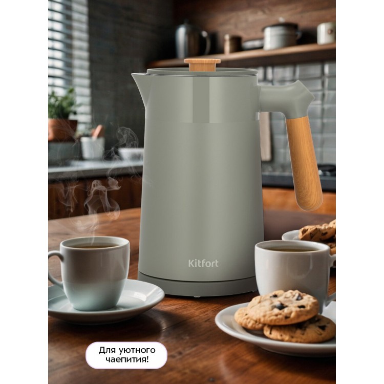 Чайник Kitfort стал настоящим украшением моей кухни — его стильный дизайн гармонично вписался в интерьер.