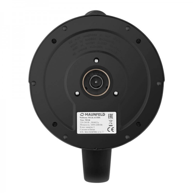 Название Чайник электрический Maunfeld MGK-633BK; Бренд MAUNFELD; Тип чайник; Тип нагревательного элемента закрытый; Безопасность блокировка крышки, отключение при снятии с подставки; Особенности вращение на 360 градусов, двойные стенки, индикатор уровня воды, индикация включения, отсек для хранения шнура, фильтр; Гарантийный срок 1 г; Цвет черный;