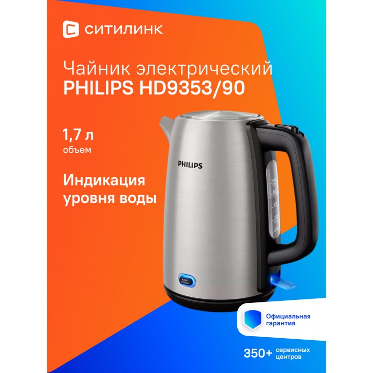 Чайник Philips HD9353/90-отличная модель для приобретения. Мерцающая кнопка подогрева и подсветка позволят включить чайник даже в полной темноте. Чайник легкий, бесшумный, стильный, крышка открывается полностью, в него легко наливать воду. Измерения дозатора в литрах и кружках, теперь я точно знаю, сколько воды вскипятить на пятерых гостей.