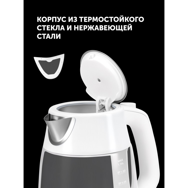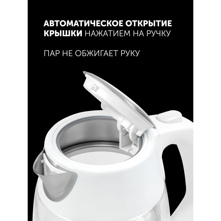 Достойный чайник, со своей задачей справляется. Понравилась крышка, она и снимается полностью, чтобы чайник можно было очистить от накипи, и еще открывать ее не нужно, чтобы наполнить чайник, сверху есть отверстие, удобно и практично