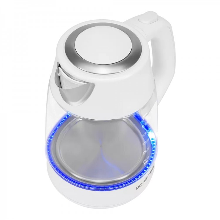 Чайник хороший, выглядит надежно, колба стеклянная в необычном обрамлении пластиком, в виде ромбов, смотрится эстетично. При включении загорается приятная синяя подсветка. Удобно, что всегда видно уровень воды. Ручка комфортная