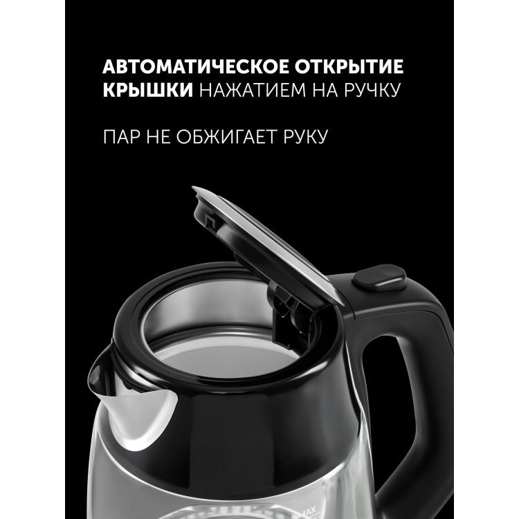 * Безопасность. Электрочайник оснащён блокировкой включения без воды и отключением при снятии с подставки, что обеспечивает безопасность использования.