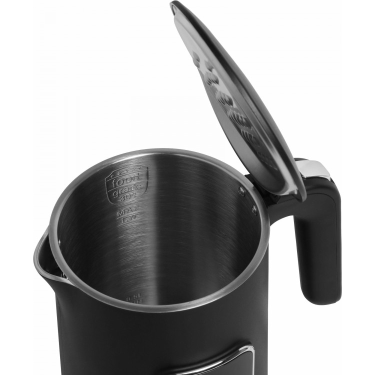 Этот электрочайник имеет объём 1,7 литра и мощность 2200 Вт, что позволяет быстро вскипятить воду. Нагревательный элемент закрытого типа обеспечивает долговечность и безопасность использования.