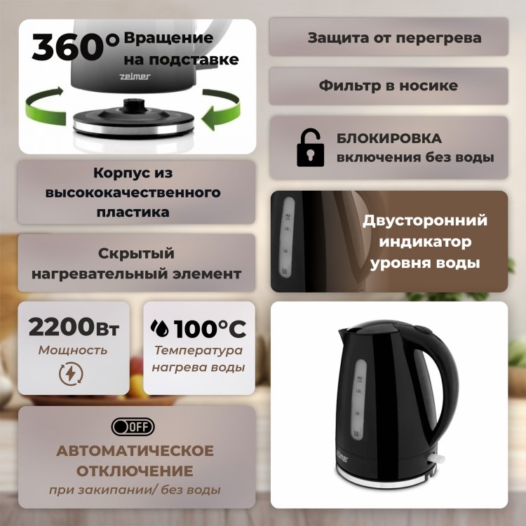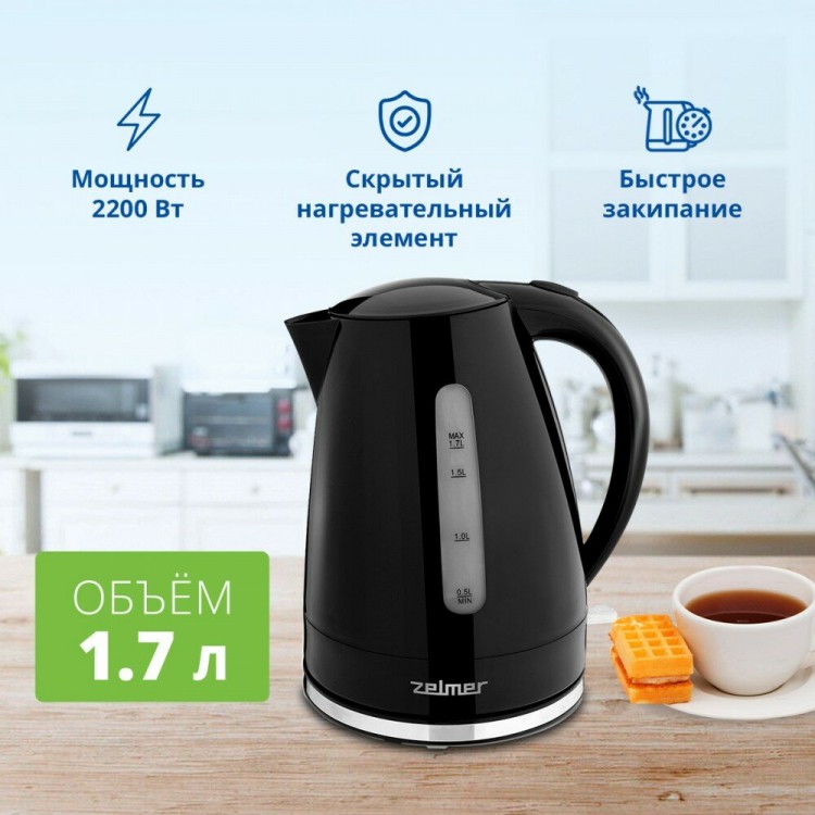 Ищете качественный электрочайник для вашей кухни? Обратите внимание на модель ZELMER ZCK7617B. Этот чёрный электрочайник объёмом 1,7 литра обладает мощностью 2200 Вт, что обеспечивает быстрое кипячение воды.