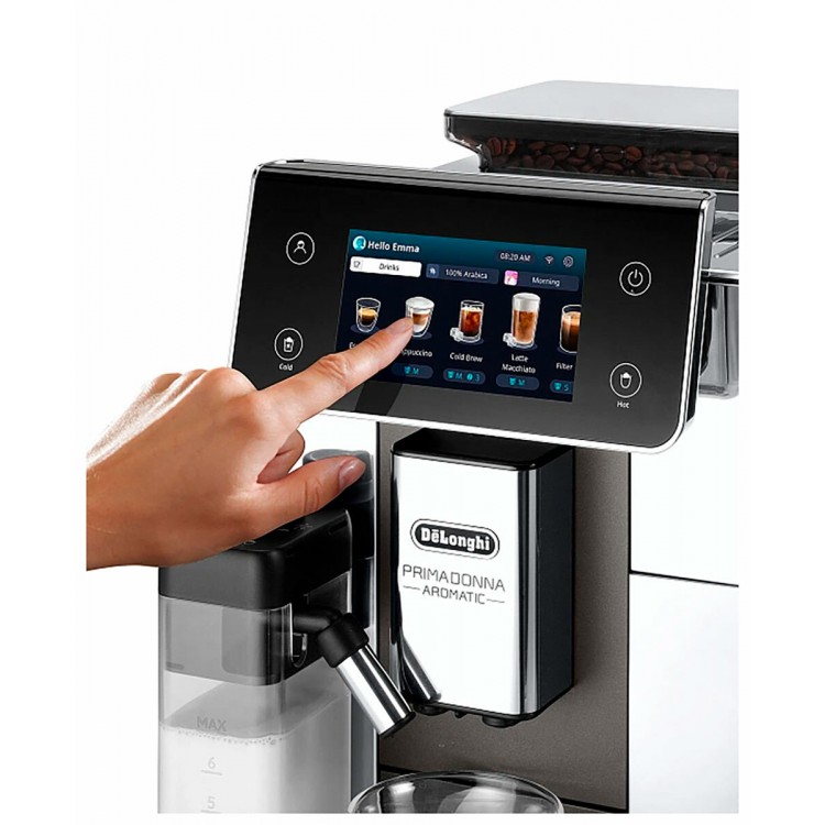 Кофемашина поддерживает приготовление различных напитков: американо, капучино, кортадо, латте макиато, фильтр-кофе и эспрессо. Благодаря давлению в 19 бар и автоматической кофемолке вы сможете насладиться насыщенным вкусом свежесваренного кофе.