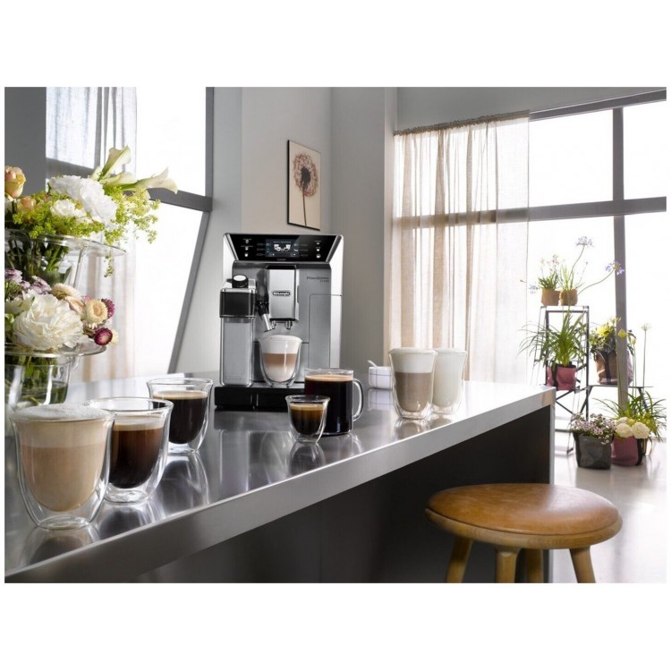 Кофемашина DeLonghi PrimaDonna Class ECAM550.65. SB готовит напитки из молотого и зернового кофе. Благодаря давлению в 19 бар и термоблоку вы сможете оценить глубокий вкус и аромат каждого глотка.