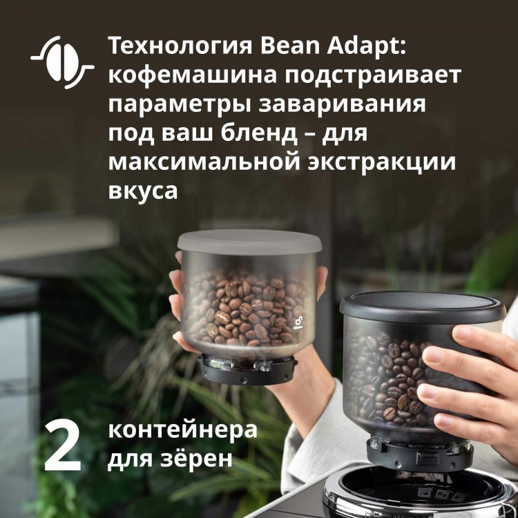Для варки кофе достаточно выбрать напиток, объём порции и крепость. Промывается после каждого включения и выключения автоматически. Можно добавлять свои профили для членов семьи с настройками желаемых напитков, устанавливать время варки кофе для автоматизации и ещё более быстрой варки.