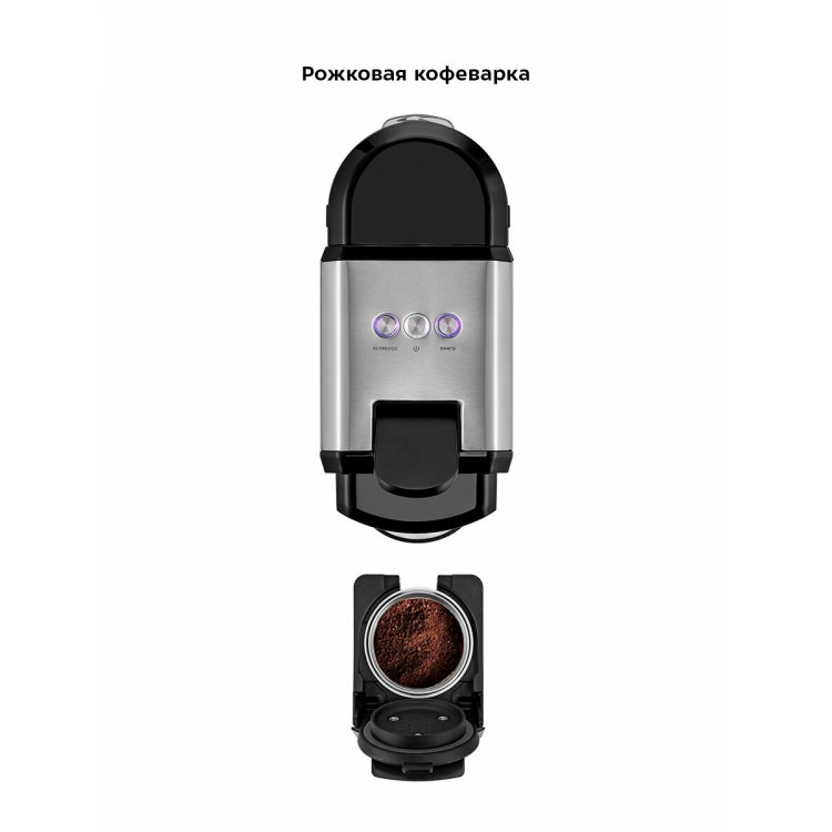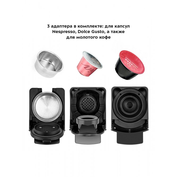 Быстрый нагрев, вместительный объем контейнера для воды, адаптеры для капсул и молотого кофе
