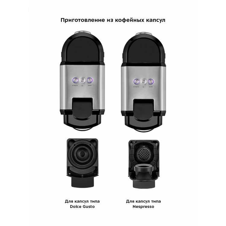 возможность готовить кофе из различных капсул и просто молотого