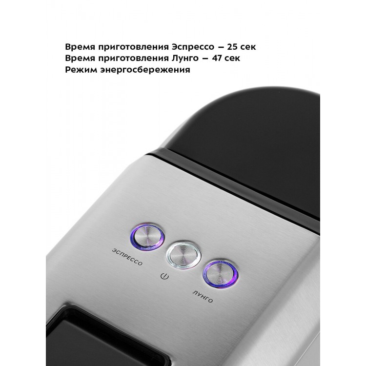 простая в использовании и компактная кофемашина. смотрится стильно благодаря металлическому корпусу. лёгкий старт работы без лишних заморочек.