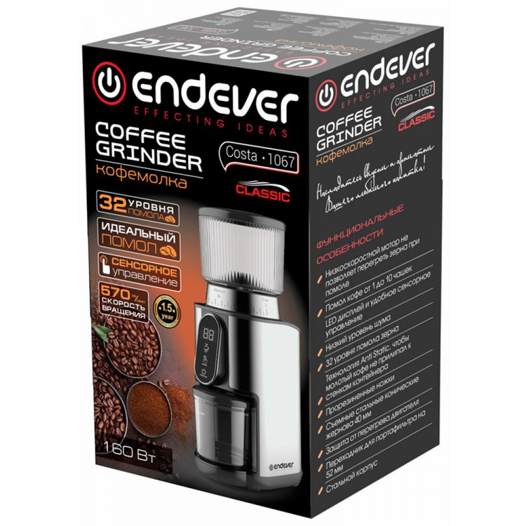 | Название | Кофемолка Endever COSTA-1067, стальной/черный |