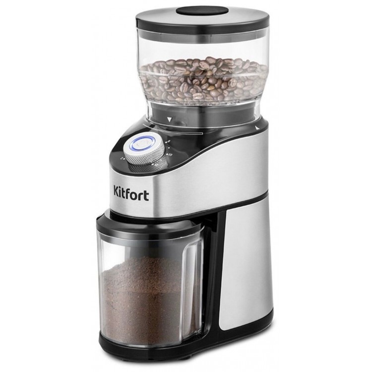 После покупки кофеварки Делонги 685 решила купить также кофемолку для нее. Прочитала обзоры, где рекомендуют именно жерновую кофемолку, которая при помоле не пережигает кофе. Однако оказалось, что не все кофемолки, которые называются жерновыми, являются такими по сути, так как есть псевдожерновые кофемолки. Эта же кофемолка Китфорт по настоящему жерновая, так как оснащена коническими жерновами. Плюсом этой кофемолки несомненно является цена, так как цены на кофемолки с коническими жерновами стартуют с 8000 руб. как минимум. Я же вообще купила эту кофемолку по акции за 3150 руб, вообще отличная цена. Кофе мелет однородно, есть как самый мелкий помол под турку, так и более крупный помол. Для меня самым трудным оказалось собрать кофемолку. Как то не очень понятно, на мой взгляд. И конечно к минусам кофемолки отнесу отсутствие помола в рожок. А так меня пока все устраивает. Пользуюсь кофемолкой уже месяц.