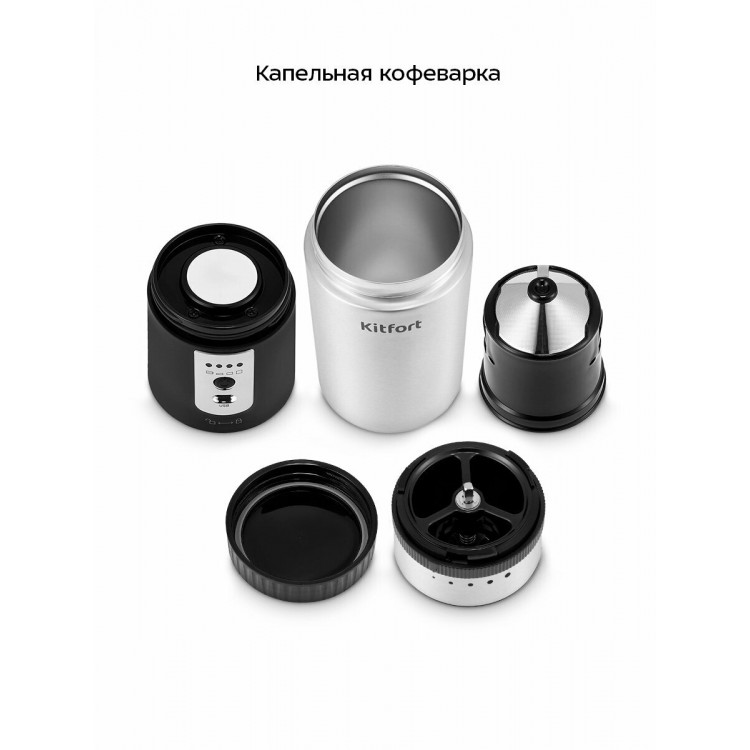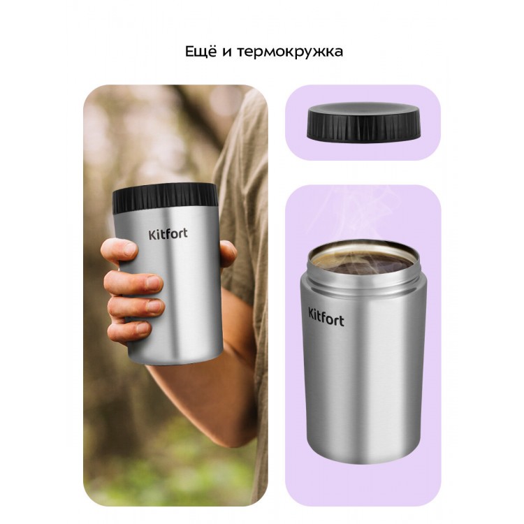 Резервуар для смолотого зерна при необходимости можно использовать как термокружку. Также есть фильтр для приготовления напитка.