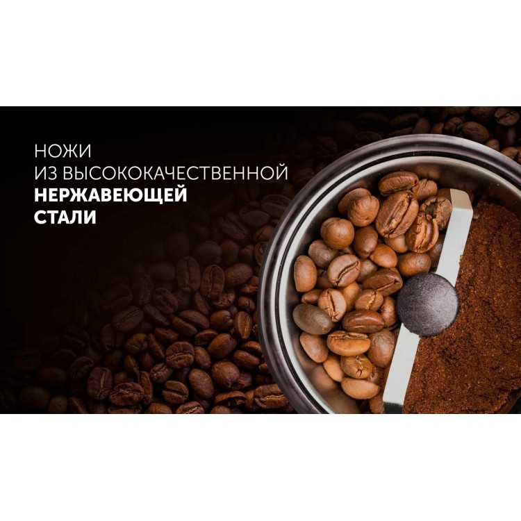 - Мощность 25 Вт. Это позволяет быстро и эффективно измельчить нужное количество зёрен, не перегружая прибор.