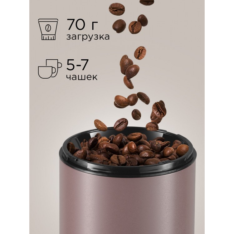 * Вместимость: 70 г — идеально для одной порции кофе.