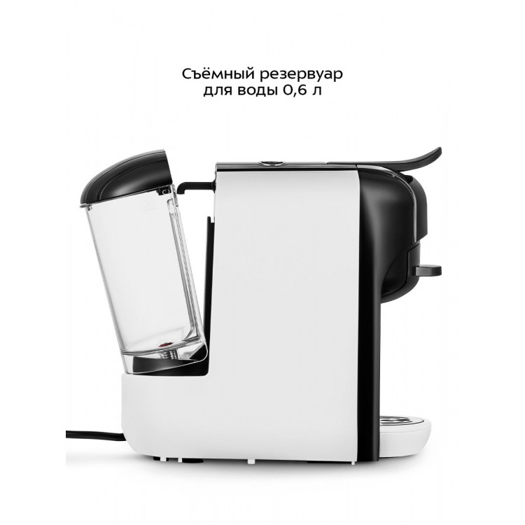 отличная кофемашина для маленькой квартиры, занимает мало места. работает тихо не тревожа сон спящих людей. сделана из качественного пластика, ощущения что проработает долго. дизайн приятный, подойдёт для любой кухни. Большой плюс что подходят несколько видов капсул и можно использовать молотый кофе.