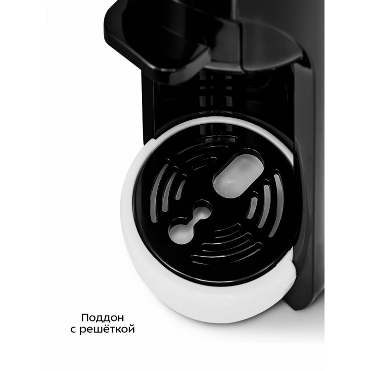 Отличная кофеварка! Купила уже вторую, для дачи! Компактная, многофункциональная! Кофе получается вкусным и из капсул, и молотый. Нравится, что можно настроить объём порции.