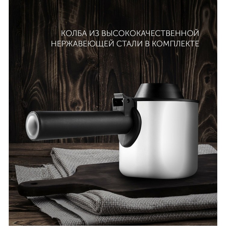 Неплохая бытовая модель, готовит под давлением 4 бара, что оптимально для американо, при этом и капучино без труда готовим на ней, насадка для этого имеется в комплекте.