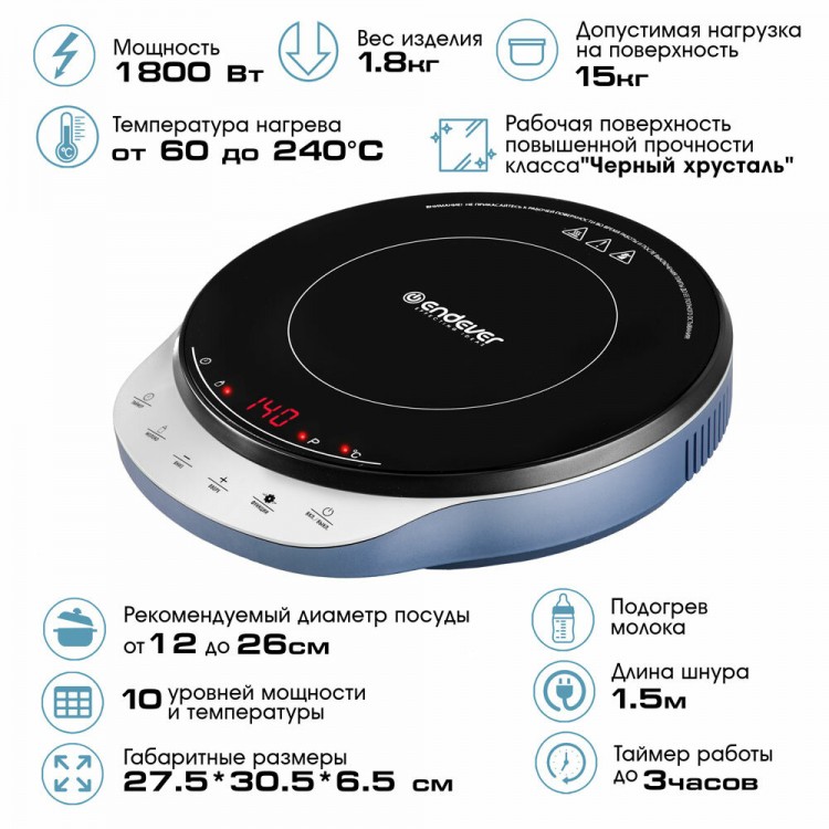 | Название | Индукционная плитка настольная ENDEVER Skyline IP-70 / 1800 Вт / 10 уровней мощности |
