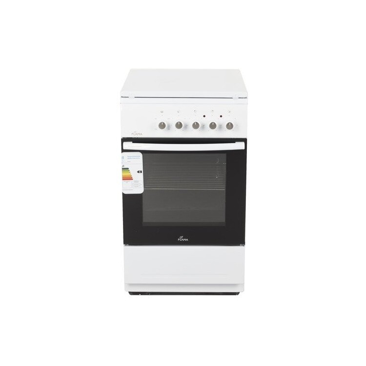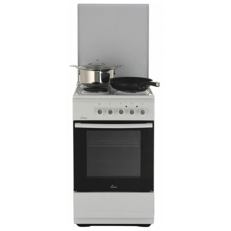 Духовка электрической плиты Flama L FE 14010 W имеет объём 50 литров. Она позволяет приготовить блюда на большую компанию или испечь большой пирог.