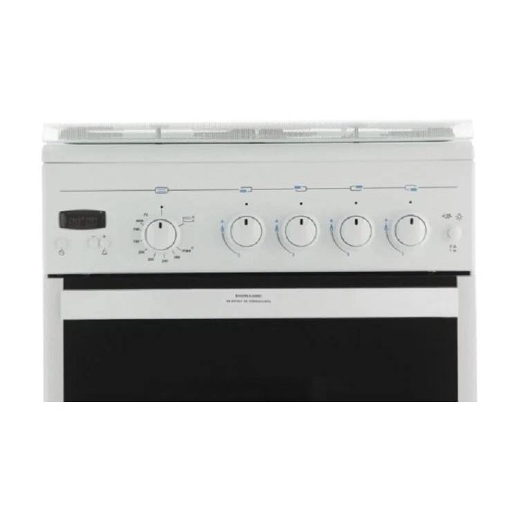 Плита оснащена газ-контролем конфорок и духовки. Для удобства использования есть электроподжиг.