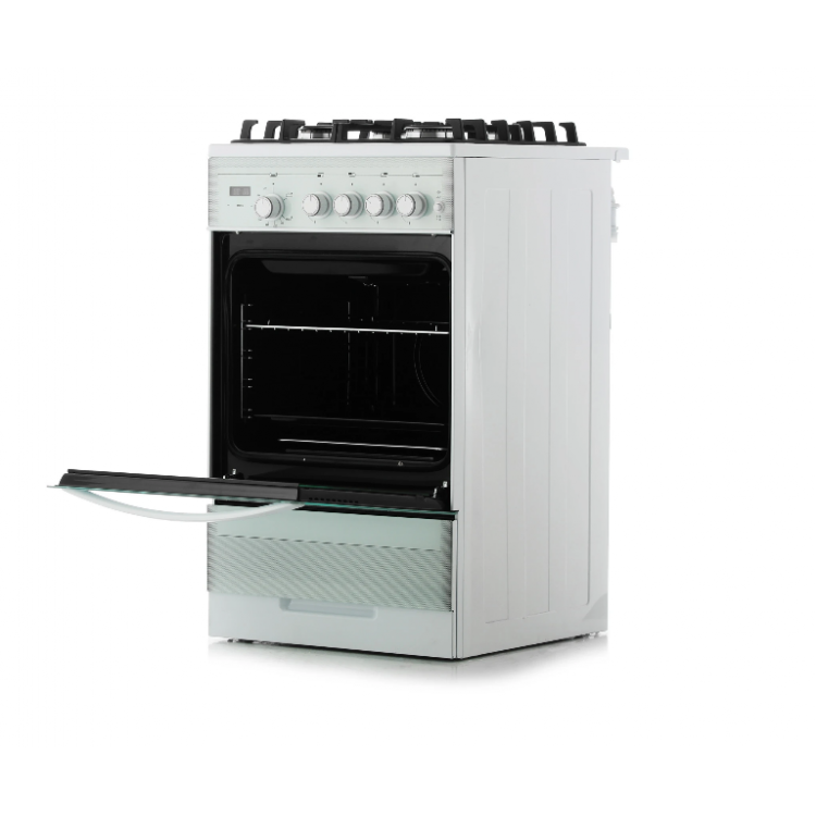 * Духовка: газовая духовка с объёмом 52 литра обеспечивает равномерное приготовление блюд. Максимальная температура достигает 250 градусов, что позволяет готовить разнообразные блюда.