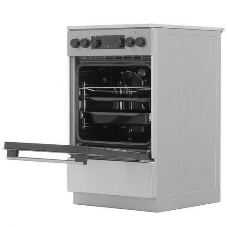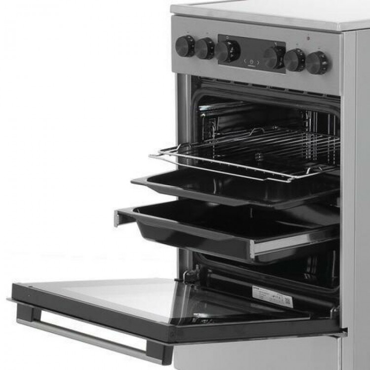 Два стекла в дверце духовки обеспечивают безопасность и сохранение тепла. Гидролизная очистка упрощает уход за плитой. Дополнительные функции, такие как таймер, подсветка духовки, часы и ящик для посуды, делают использование плиты ещё более комфортным.