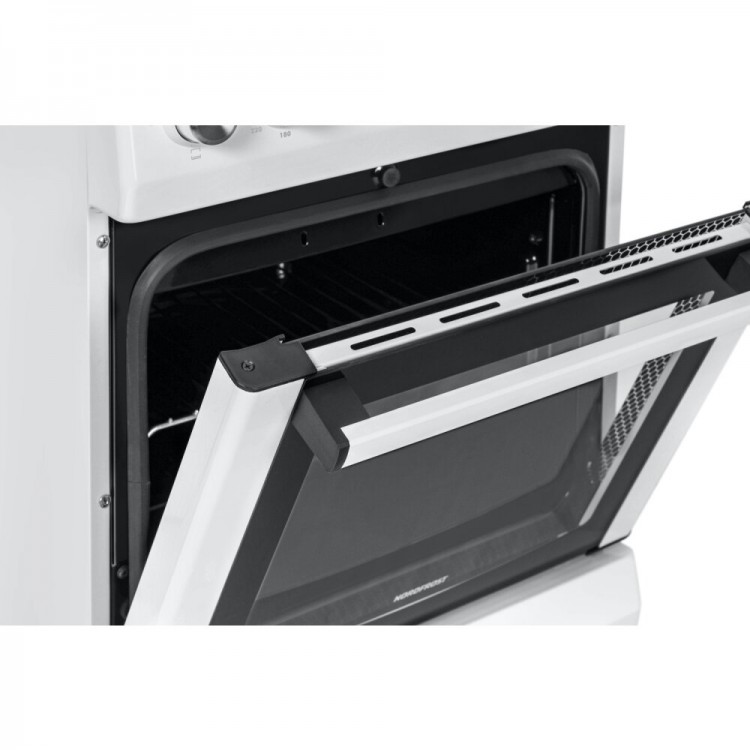 Эта плита оснащена четырьмя конфорками, что позволяет готовить несколько блюд одновременно. Она также имеет объёмную духовку на 52 литра, которая позволяет готовить большие порции. Максимальная температура духовки составляет 250 градусовC, что позволяет быстро и равномерно пропекать блюда. Два стекла дверцы духовки обеспечивают безопасность, а эмаль лёгкой чистки упрощает уход за поверхностью.