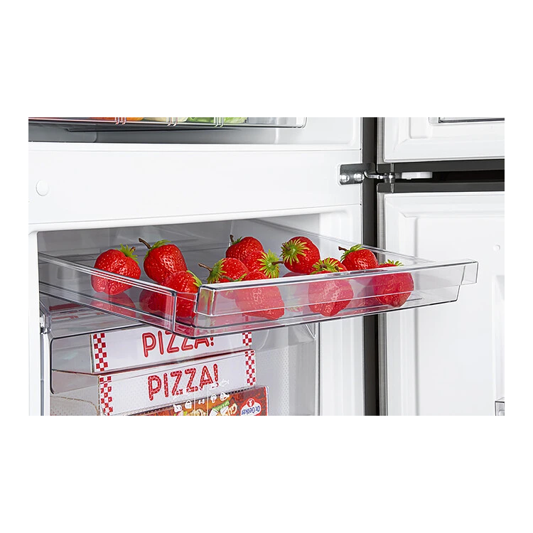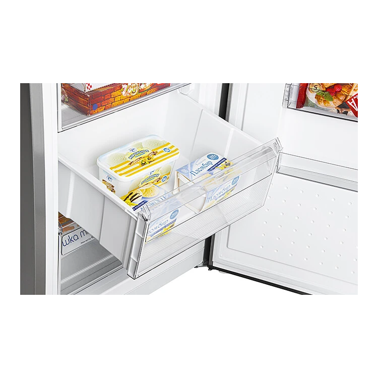 * Морозильная камера внизу. Такая конструкция удобна в использовании, так как позволяет легко доставать замороженные продукты и не требует усилий для загрузки и выгрузки.