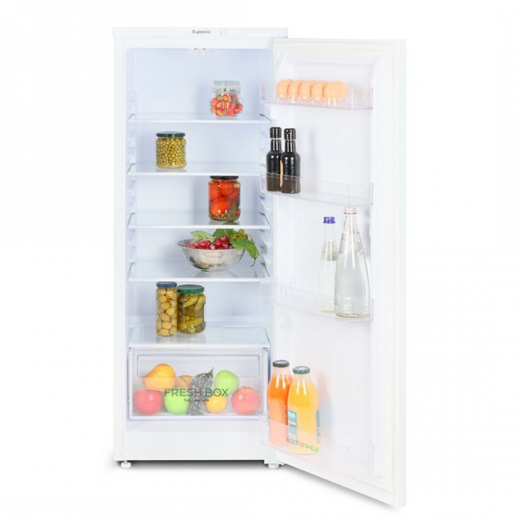 Общий объём холодильной камеры составляет 180 литров, что позволяет разместить большое количество продуктов. В холодильнике четыре полки и один ящик в холодильном отделении.