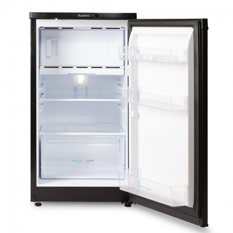 Стандартный компрессор работает тихо (уровень шума всего 40 дБ), а общий объём холодильника составляет 115 литров, из которых 27 приходится на морозильную камеру. Минимальная температура в ней достигает -12 °С.