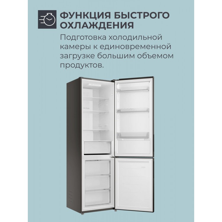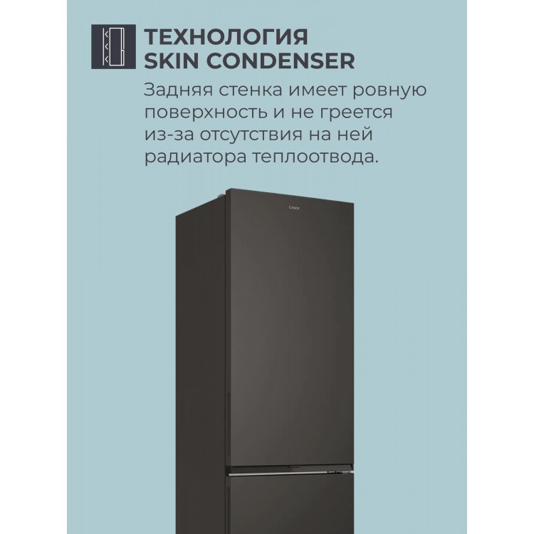 НазваниеДвухкамерный холодильник Candy COMBI CFN6200BO, 334 л, Total No Frost, Skin Condenser, перенавешиваемые двери, быстрое охлаждение, черный обсидиан