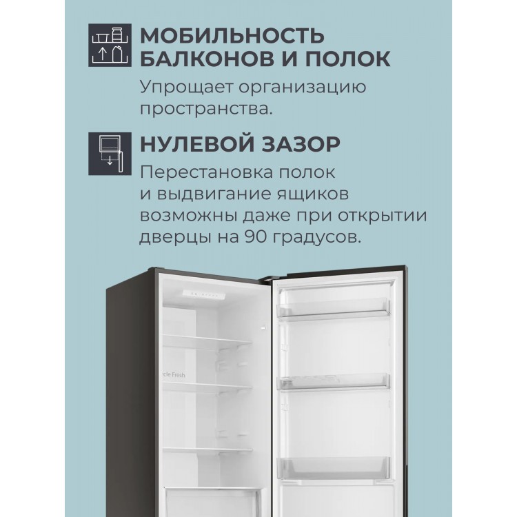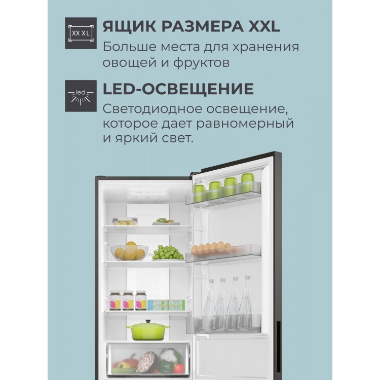 * Большая вместительность. Общий объём холодильника составляет 409 л, холодильной камеры — 278 л, а морозильной — 131 л.