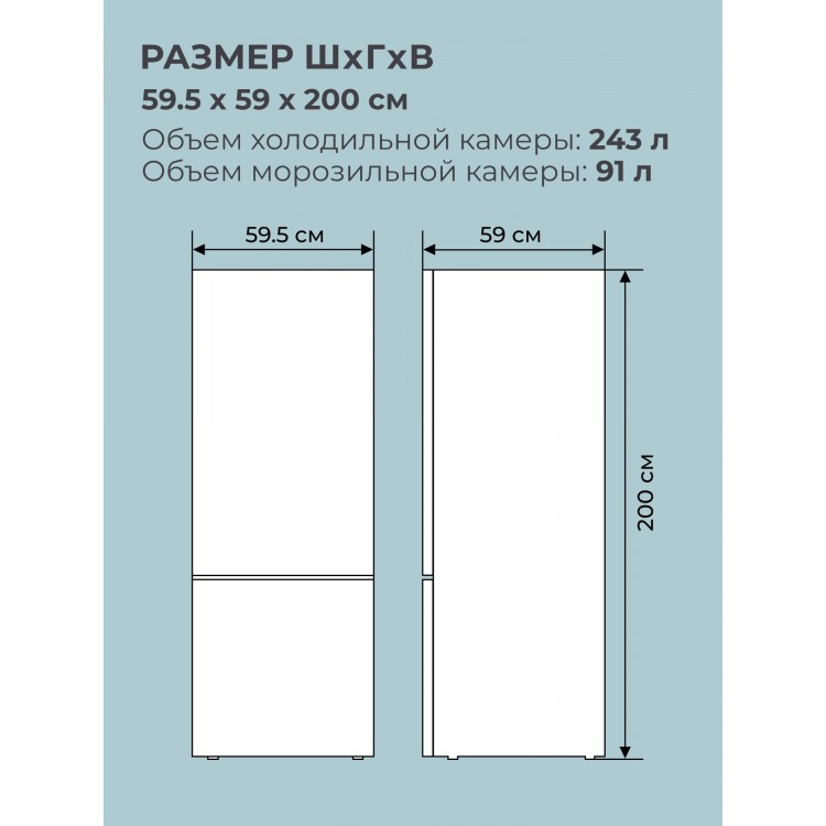Габариты (ШxГxВ): 59.5 см. 59 см. 200 см