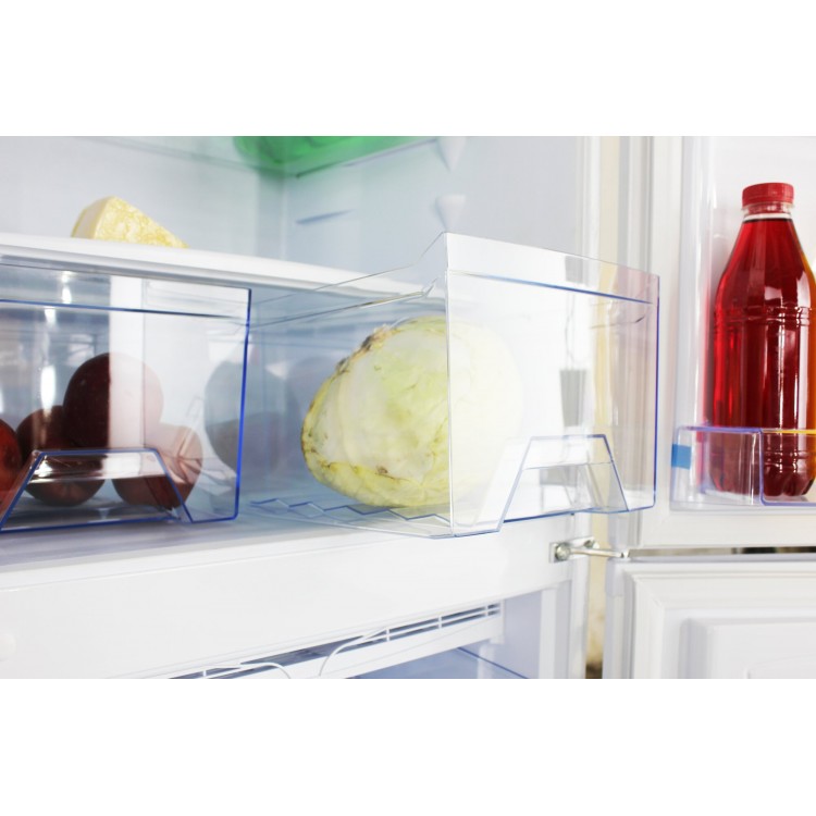 - Складная полка и дополнительные ящики обеспечивают удобство хранения продуктов.