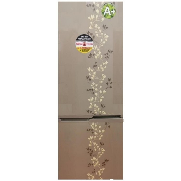Холодильник большой, вместительный с большой холодильной камерой и большой морозильной камерой. Полки стеклянные, решетка для бутылок блестящая, В морозильной камере ящики пластиковые, Здорово. Но порадовала еще и цена. Большой холодильник, стильный, очень украшает кухню. А цена - замечательная . Работает довольно-таки негромко.